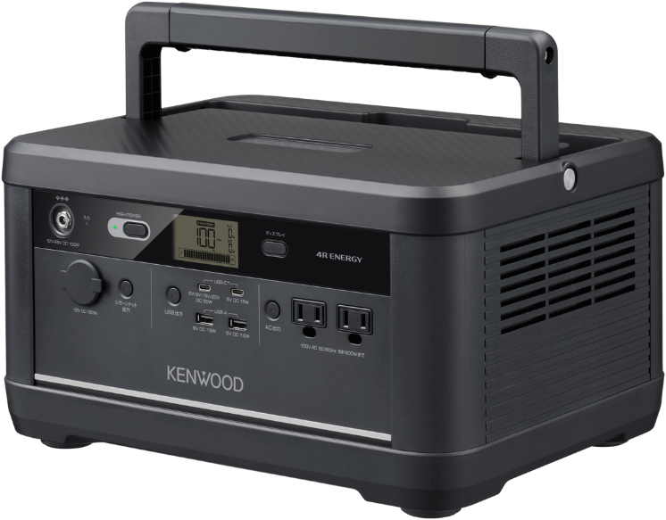 電気自動車の再生バッテリーを使用。-20℃~60℃まで幅広い温度環境に対応。 サイズ/W370×D282×H205mm 同梱品/ACアダプタ、電源コード、車載用シガーアダプター、変換コネクター 生産国/日本